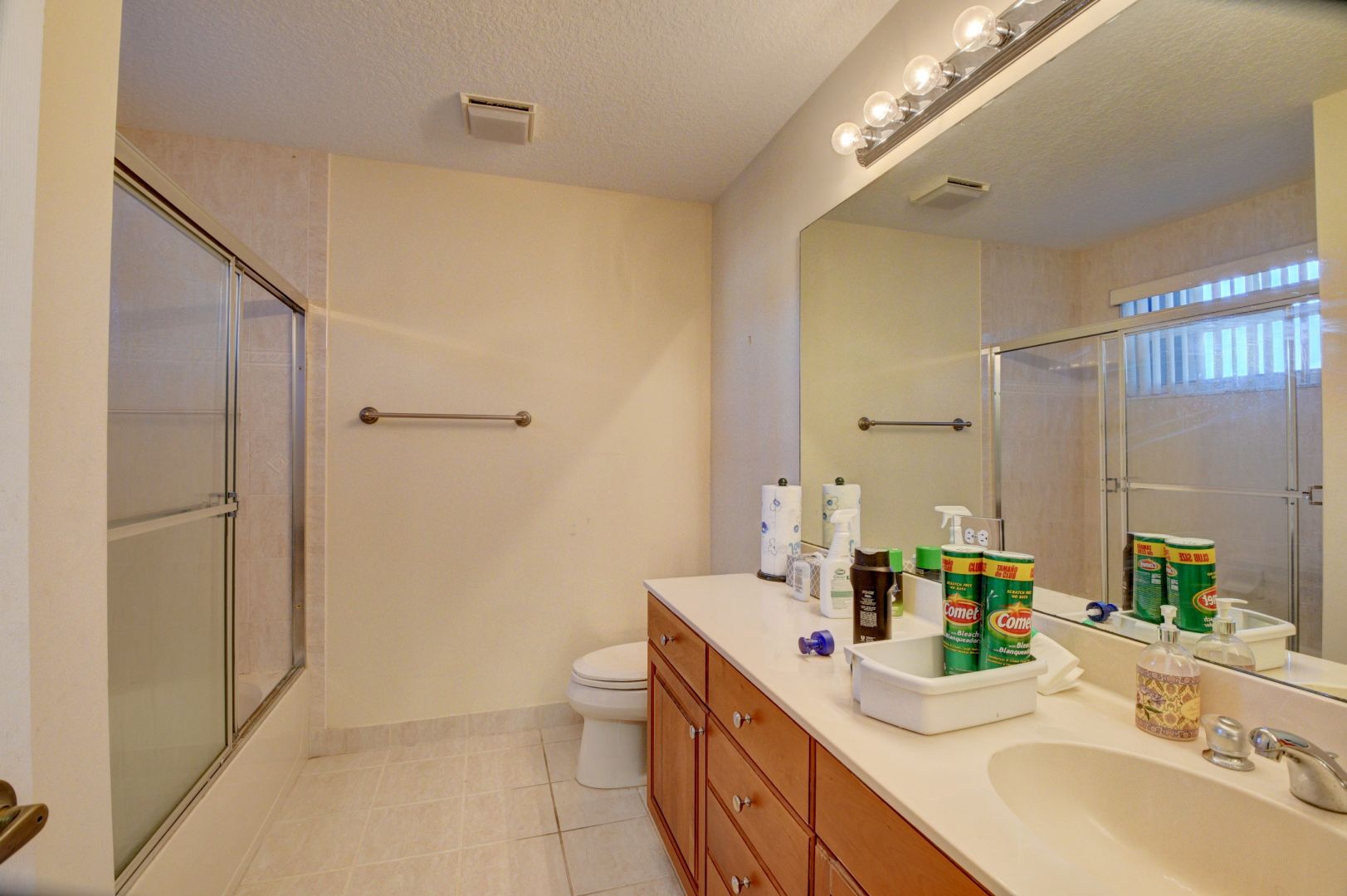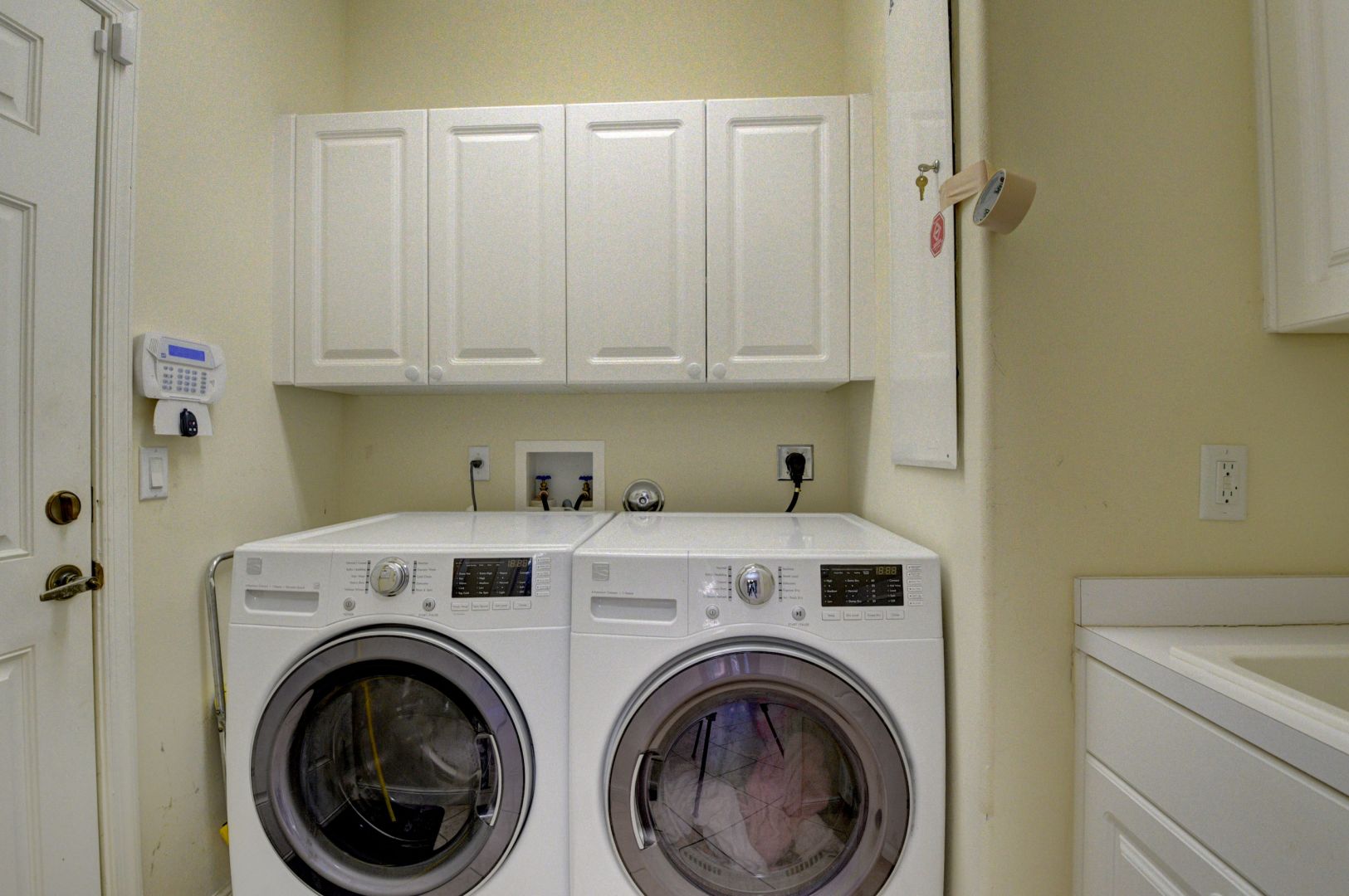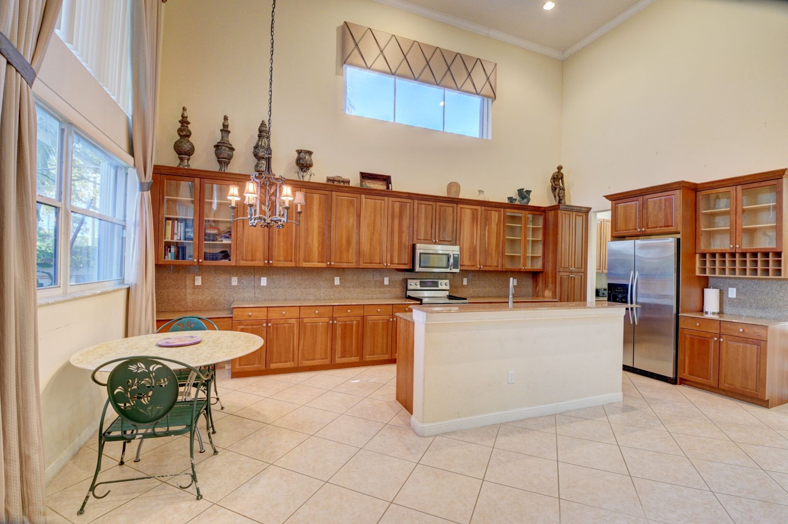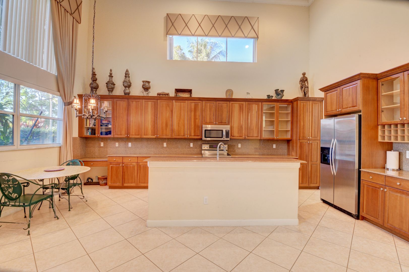 INSIDE YOUR HOME: Eight foot high sliding glass doors, Dramatic Volume ceiling heights, Diagonal 18" Ceramic Floors, Security alarm system on all windows and doors with motion detector, 2x energy-efficient air conditioning and heating system, Marble window sills, Round corner bead, Fully air-conditioned his and her Walk in Closets in master bedroom, Textured knockdown finish on ceilings, Wall and base cabinets in laundry room, Full size Frontloading Washer and Dryer, Tray ceilings, 66 gallon water heater. INSIDE YOUR KITCHEN: 12" granite tile countertop, 4" backsplash, Designer raised-panel foil cabinets with 42" wall cabinets and Island Cabinet, Cabinet pantry with shelves, additional butler's pantry, Stainless Steel appliances, self-cleaning oven with deluxe glass top range, over the range microwave oven, glass cabinets, wine rack, 22 cu ft. side by side refrigerator with water and ice on door, automatic dishwasher. INSIDE YOUR BATHS: Full width mirror above vanities, Custom one piece cultured marble vanity tops, Deluxe cultured marble Roman tub in Master bath, Bidet, Decorative lighting, Recessed medicine cabinets in all baths, Pedestal sink in powder room