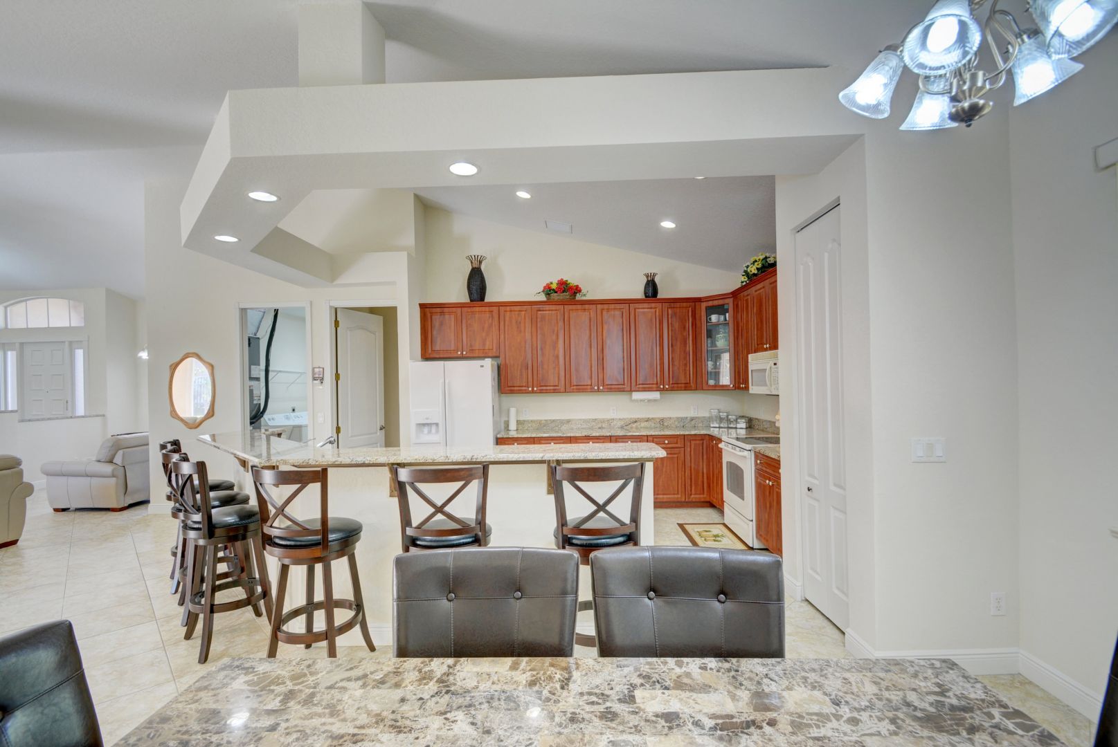 Pride of Ownership Shows in this Meticulously Clean,Neat 4 Bedroom, 3 Full Bathroom home with 2 Master Suites. Home is located in the Highly sought after Torino in PSL. Custom home offers High Vaulted & Tray ceilings. Large Open Concept Living areas. Dining can phase from eat in kitchen with ease to a snack bar area. The kitchen Boasts a huge Cook's Island with beautiful Granite Countertops and Great for Entertaining. W/D utility room with utility sink,and Long wall pantry space. Lovely Screened Lanai Patio with Tile Floor. Primary Master has Jacuzzi & Separate shower, His and Her walk in Closet. 2nd Master Suite bedroom with full bathroom. Diagonal tile throughout most of home. A/C & Refrigerator 2017.